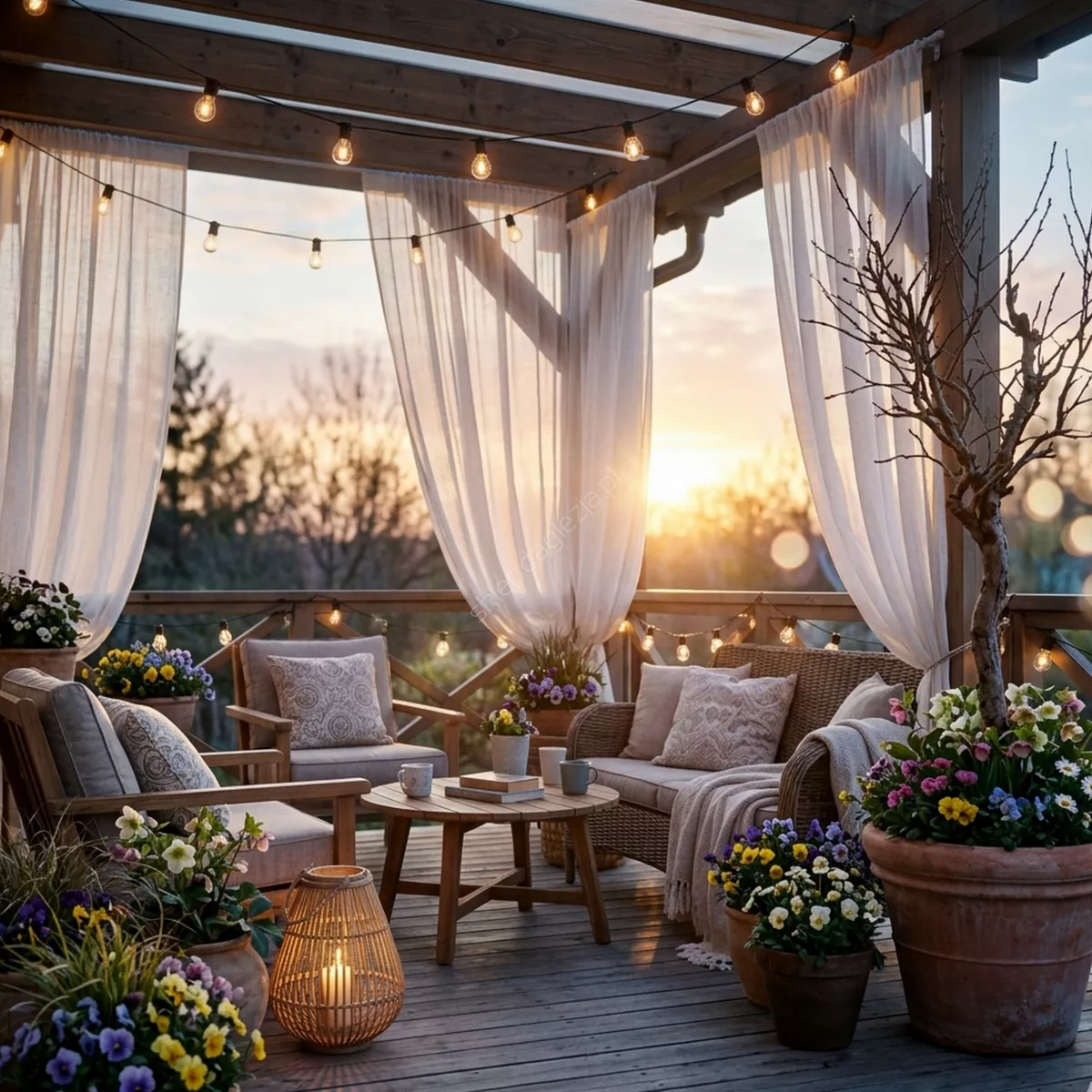 delikatne światło na tarasie.